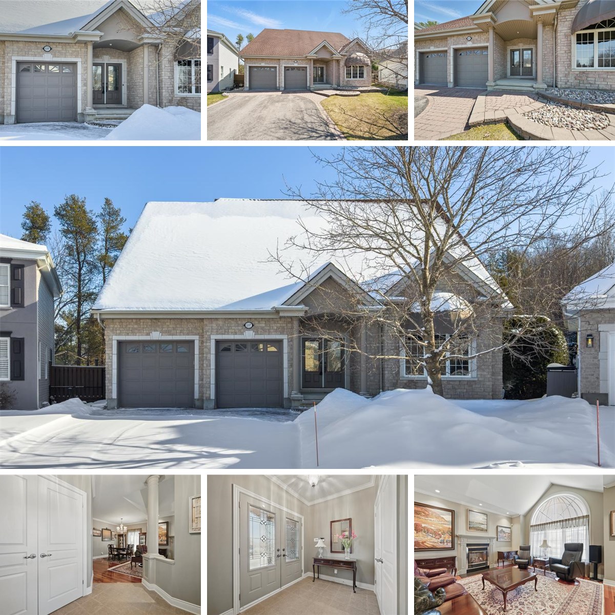 Pride of ownership shines through in this exceptional 4-bedroom, 3 full bathroom bungalow, perfectly situated on a massive pie-shaped lot backing onto the Rockland Golf Club. From the moment you arrive, you'll appreciate the curb appeal, with a double-wide driveway leading to a welcoming entrance with interlock. Step inside to an open-concept main floor featuring 9-foot ceilings and beautiful hardwood flooring. The spacious living room with a cozy gas fireplace flows seamlessly into the elegant formal dining area - ideal for entertaining. At the heart of the home is a stunning custom Chefs kitchen, complete with abundant cabinetry, granite countertops, high-end stainless steel appliances including a gas stove, and a massive island. The kitchen overlooks a breathtaking four-season sunroom, perfect as a relaxing sitting area or casual dining space. Step out to the backyard oasis featuring a 16' x 20' deck with a large gazebo, built-in BBQ area with natural gas hookup, garden shed, and lush landscaping including a tranquil pond and hill. The fully fenced and hedged yard ensures total privacy with no rear neighbors - your own personal sanctuary. The main floor also includes a generous primary suite with a walk-in closet and a luxurious 4-piece ensuite featuring a soaker tub and separate shower. A second bedroom, additional full bathroom, and convenient laundry room with direct access to the insulated, heated 3-car garage with a rear yard door complete the main level. Downstairs, the 9-foot ceilings continue in the expansive finished basement, offering a huge family room with a second gas fireplace, two more spacious bedrooms, a full bathroom, and ample storage space. Truly a one-of-a-kind property that must be seen to be fully appreciated!