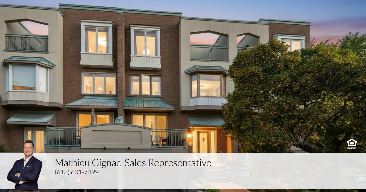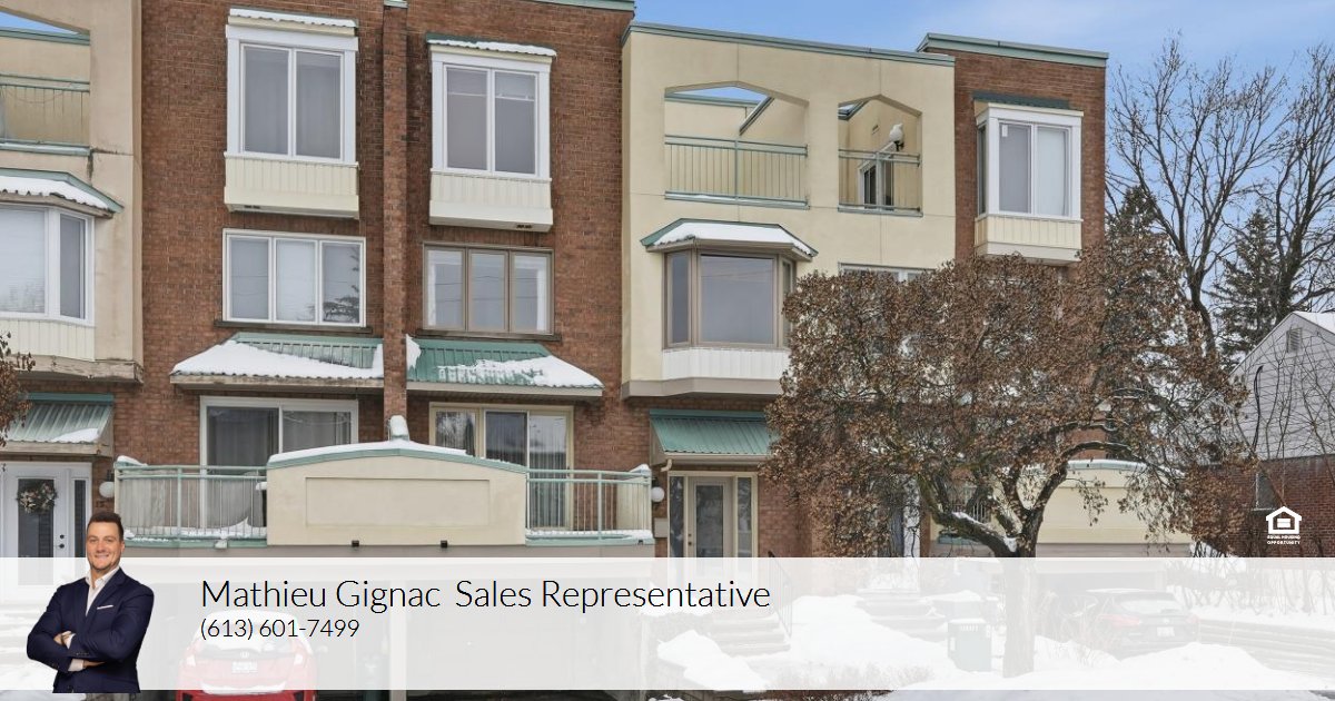 Welcome to 17 Columbus Avenue - a 3 bedroom + den, 3 bathroom freehold townhome tucked off North River Road, just minutes from Ottawa's best amenities, highway 417, downtown core/ByWard Market, cultural landmarks, the Rideau Sports Center & Tennis Club, the Adawe Crossing Bridge, and scenic pathways. This one-of-a-kind home offers the perfect balance of comfort and convenience. The driveway fitting 2 cars gives access to the attached garage and a pathway leads you to the front entrance, where a spacious foyer with powder room access sets the tone. Just a few steps up, the sun-filled living room features gleaming hardwood floors, patio doors opening to a walk-out deck and a double-sided wood-burning fireplace shared with the dining room bathed in natural light from the overhead skylight. The kitchen offers a practical layout with white cabinetry, tile backsplash, and new LED lighting. On the second level, you'll find two generous bedrooms, a full bathroom, and a versatile den with custom floor to ceiling built-in wooden library/office - perfect as a home office, reading nook, or easily converted into a 4th bedroom. A dedicated laundry room with a large storage closet completes this level. The top floor is reserved for the private primary retreat, complete with a 5-piece ensuite, spacious walk-in closet, and a sunny terrace with retractable awning. The basement provides direct garage access, a cedar closet, and a workshop/storage area. This freehold townhome is truly unlike any other and location can't be beat - come visit today!