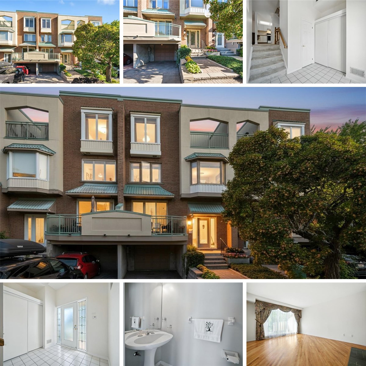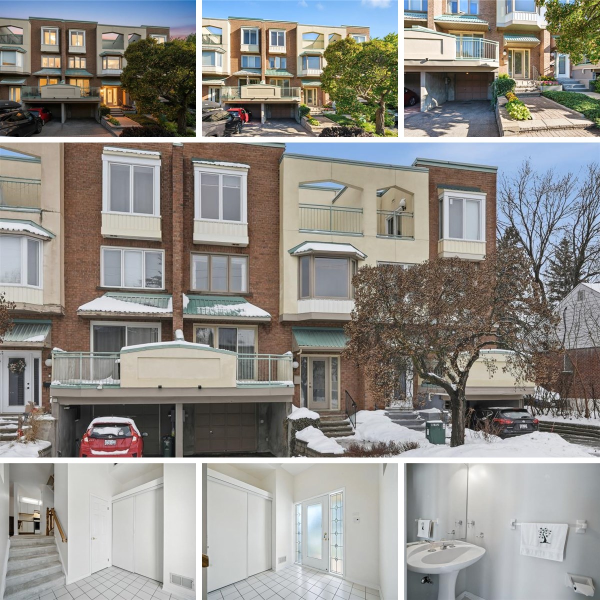Welcome to 17 Columbus Avenue - a 3 bedroom + den, 3 bathroom freehold townhome tucked off North River Road, just minutes from Ottawa's best amenities, highway 417, downtown core/ByWard Market, cultural landmarks, the Rideau Sports Center & Tennis Club, the Adawe Crossing Bridge, and scenic pathways. This one-of-a-kind home offers the perfect balance of comfort and convenience. The driveway fitting 2 cars gives access to the attached garage and a pathway leads you to the front entrance, where a spacious foyer with powder room access sets the tone. Just a few steps up, the sun-filled living room features gleaming hardwood floors, patio doors opening to a walk-out deck and a double-sided wood-burning fireplace shared with the dining room bathed in natural light from the overhead skylight. The kitchen offers a practical layout with white cabinetry, tile backsplash, and new LED lighting. On the second level, you'll find two generous bedrooms, a full bathroom, and a versatile den with custom floor to ceiling built-in wooden library/office - perfect as a home office, reading nook, or easily converted into a 4th bedroom. A dedicated laundry room with a large storage closet completes this level. The top floor is reserved for the private primary retreat, complete with a 5-piece ensuite, spacious walk-in closet, and a sunny terrace with retractable awning. The basement provides direct garage access, a cedar closet, and a workshop/storage area. This freehold townhome is truly unlike any other and location can't be beat - come visit today!