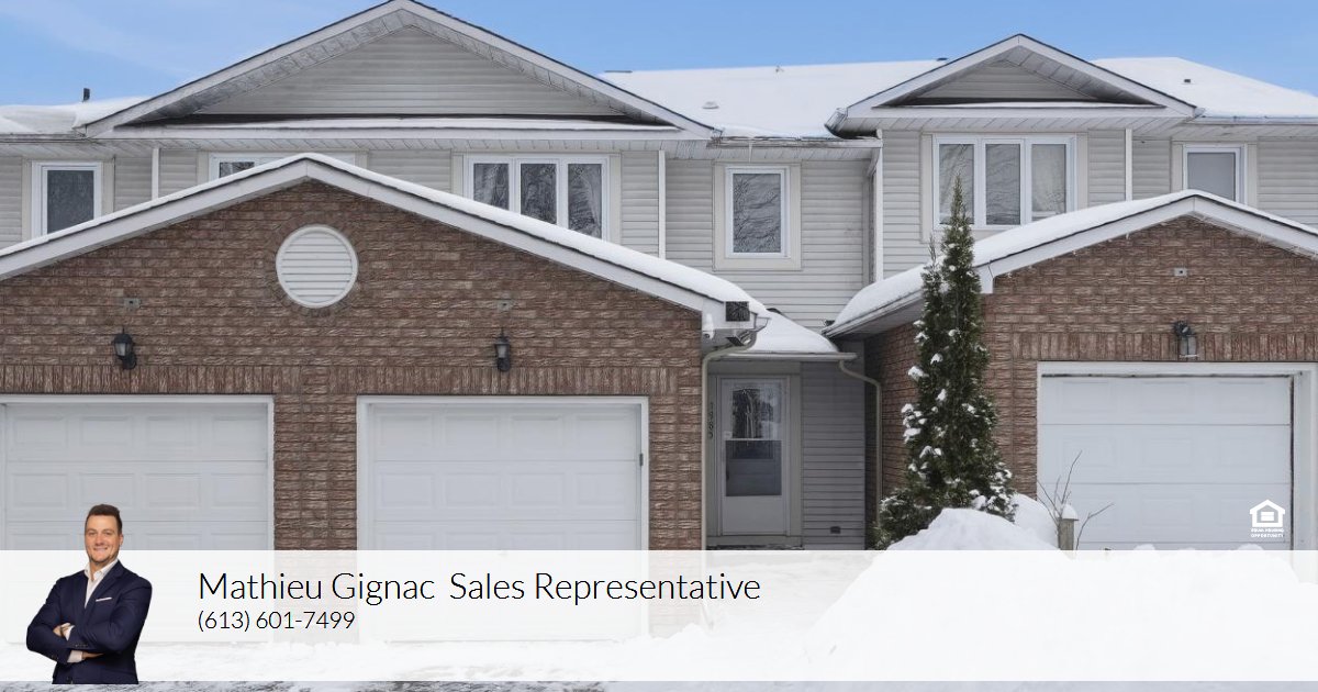 Welcome to 1985 Woods Street in the friendly town of Rockland! This beautifully updated 2-storey townhome condo with single-car garage offers 3 bedrooms and 1.5 bathrooms in a bright, functional layout. The welcoming foyer features tile flooring with convenient access to the updated powder room and garage, leading into the open-concept main floor showcasing new laminate flooring, a spacious living and dining area, and an abundance of natural light from the large window and patio door with direct access to the backyard. The well-designed kitchen is perfect for everyday living, offering ample cabinet and counter space, newer appliances, and a convenient breakfast bar. Upstairs, the generous primary bedroom features two closets and a cheater door to the full bathroom, complemented by two well-sized secondary bedrooms. The finished lower level provides additional living space with a versatile family room, a sizeable storage area, and a dedicated laundry room. Ideally located for outdoor enthusiasts, just steps to the Ottawa River, Parc du Moulin Marina, and within walking distance to grocery stores, restaurants, coffee shops, schools, and other everyday amenities, with easy access to Highway 174 for a smooth commute. A great opportunity you won't want to miss!