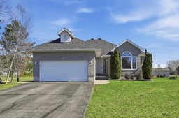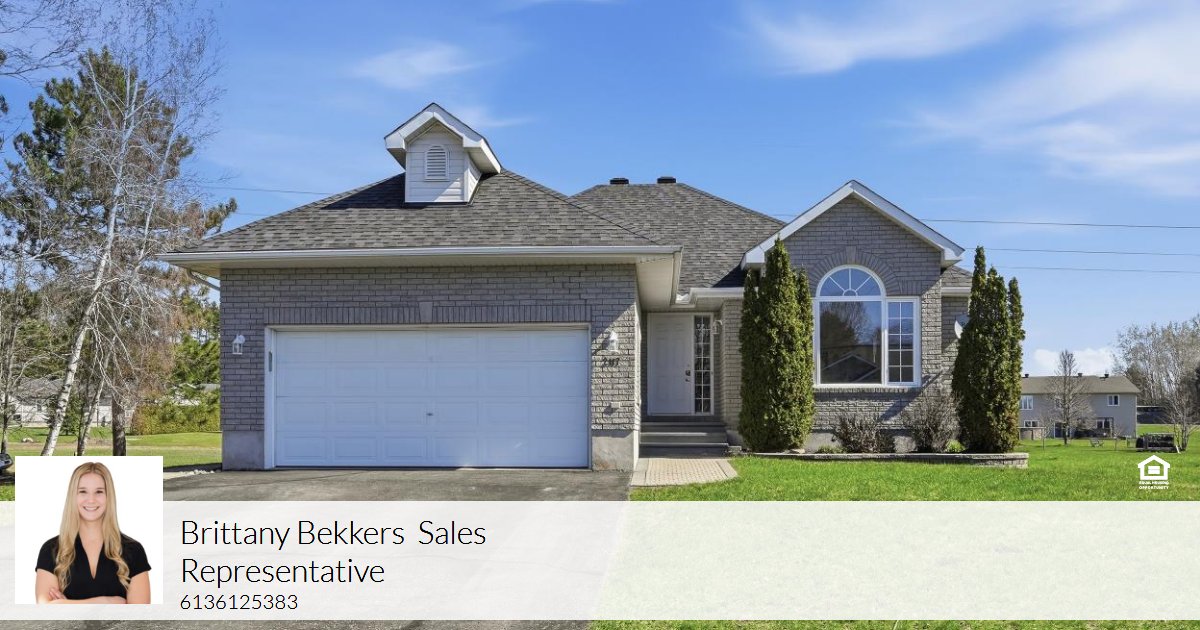 Welcome to this picturesque bungalow set on a generous 0.74 acre lot, offering the perfect blend of comfort, style, and functionality. A welcoming entrance leads into a bright, open-concept living and dining area, where a stunning three-sided fireplace creates a warm focal point. The living room is enhanced by soaring cathedral ceilings, reaching over 10 feet, adding an airy and spacious feel. Freshly painted throughout, the home feels crisp, modern, and move-in ready. The dining area is filled with natural light and flows seamlessly into the well-appointed kitchen, featuring granite countertops, stainless steel appliances, and ample cabinetry. A convenient patio door leads directly to the deck-ideal for outdoor dining and entertaining. The main level offers a thoughtfully designed layout with a primary bedroom complete with its own ensuite, along with two additional bedrooms and a full bathroom. Main floor laundry adds everyday convenience. The fully finished lower level provides exceptional versatility, with large windows bringing in natural light and ample space for a recreation room, home gym, playroom, or office. Step outside to enjoy the expansive 149.55 x 216.64 ft lot, offering plenty of room for outdoor living. Whether it's gardening, relaxing by a bonfire, or letting pets roam freely, this property delivers. Cool off in the large saltwater above-ground pool during the warmer months, making this backyard a true retreat. Additional highlights include refinished hardwood flooring on the main level and a peaceful setting that combines space, privacy, and lifestyle. Peaceful, small-town setting surrounded by scenic countryside while still being within easy commuting distance to Ottawa. Outdoor enthusiasts will love that Lavigne Natural Trail, offering convenient access to beautiful hiking and nature walks. Furnace 2026, Roof approx. 2019, AC approx. 2024.