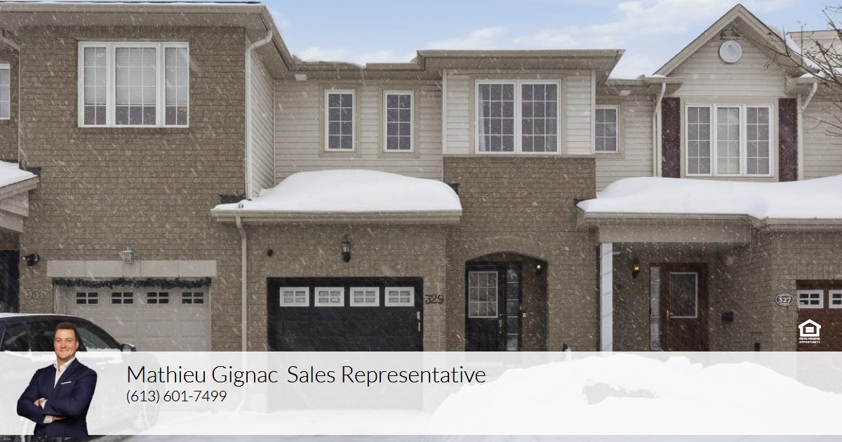 Welcome to 329 Brigitta Street - a well-maintained and move-in-ready 3-bedroom, 3-bathroom townhome in an exceptional location! The driveway comfortably accommodates two vehicles and leads to a welcoming foyer featuring a large closet, garage access, and a convenient main-floor powder room. Step into the beautiful open-concept main level with hardwood flooring throughout, offering a generously sized dedicated dining area that flows seamlessly into the bright living room, flooded with natural light. The updated kitchen showcases white cabinetry, newer countertops, stainless steel appliances, a tile backsplash, and ample cabinet and counter space. From the kitchen, step directly into the low-maintenance, fully fenced backyard-thoughtfully landscaped with a large deck, river stone, artificial grass, and ambient lighting-perfect for unwinding after work or hosting BBQ dinners. Upstairs, the spacious primary bedroom features a walk-in closet and its own 3-piece ensuite. Two additional well-proportioned bedrooms share a full bathroom. The finished basement offers a large, versatile family room with a bright window, along with a laundry area and plenty of storage. Ideally located close to parks, schools, and amenities, with quick access to the 417-this home truly checks all the boxes.