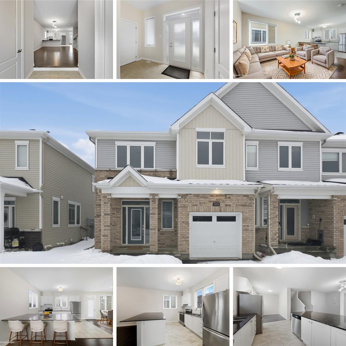 Beautiful curb appeal and a rare private driveway welcome you to this end-unit Caivan townhome, ideally located in the popular community of Orleans Village — welcome to 504 Loury Row. Step inside the spacious tiled foyer and immediately appreciate the bright, open-concept layout, filled with natural light. The inviting foyer offers a large front hall closet, a stylish powder room, and convenient inside access to the garage.