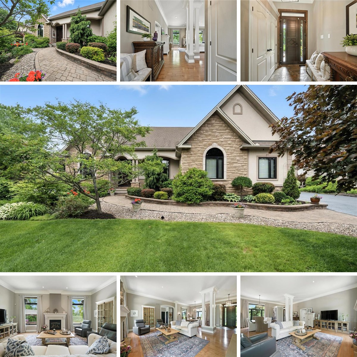 From the moment you arrive, you’re greeted by incredible curb appeal—stone and stucco exterior, manicured gardens, fresh mulch, a double car garage with updated doors (2017), and a winding stone walkway leading to a covered front porch and custom entry door (2015).